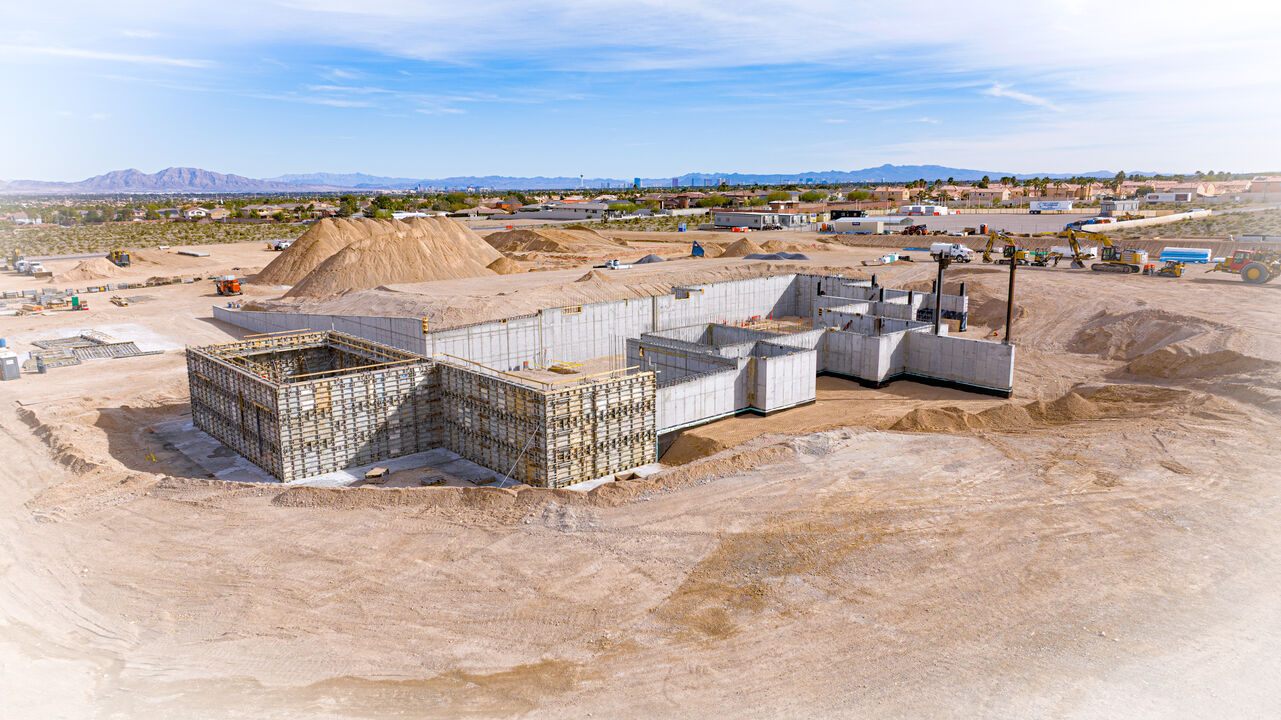 The classical architectural features of the Cali Colombia Temple are taking shape as stonemasons secure more manufactured cladding panels to the exterior walls of the sacred structure. Across from the temple, the basement walls for the ancillary building are rising, and the concrete floors are curing. Construction of Colombia's third temple has been underway for just over a year.