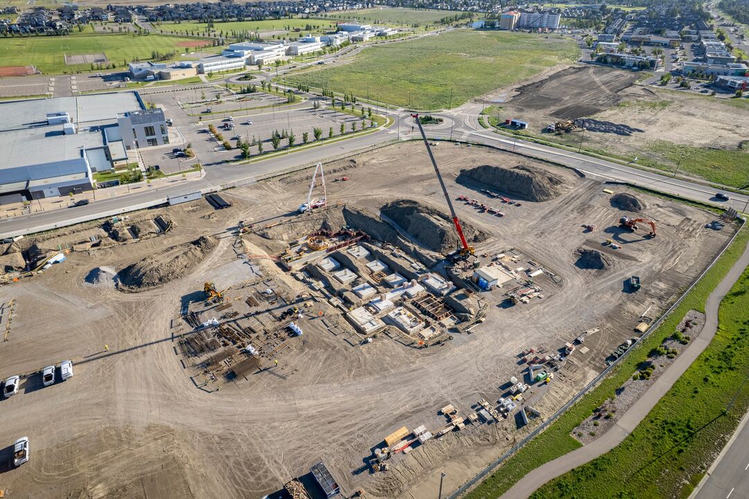 Most of the concrete footings for the Lethbridge Alberta Temple foundation have been installed. These poured-in-place structures will support the foundation walls and spread the weight of the building on the ground below to prevent settling. At the northwest corner of the property, work has begun on the foundation for the ancillary building, which will house a distribution center. Construction on the project began almost four months ago.