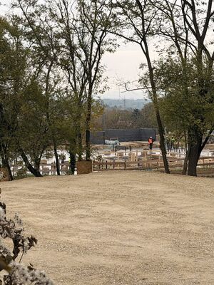 The foundation slab for the Budapest Hungary Temple has been installed. Before the concrete was poured, trenches were dug for the below-grade plumbing and utilities that will service the building. The black pipes coming through the foundation will be part of the rough-in plumbing for the water, drain, and vent lines. Construction of the temple and ancillary building began four months ago.